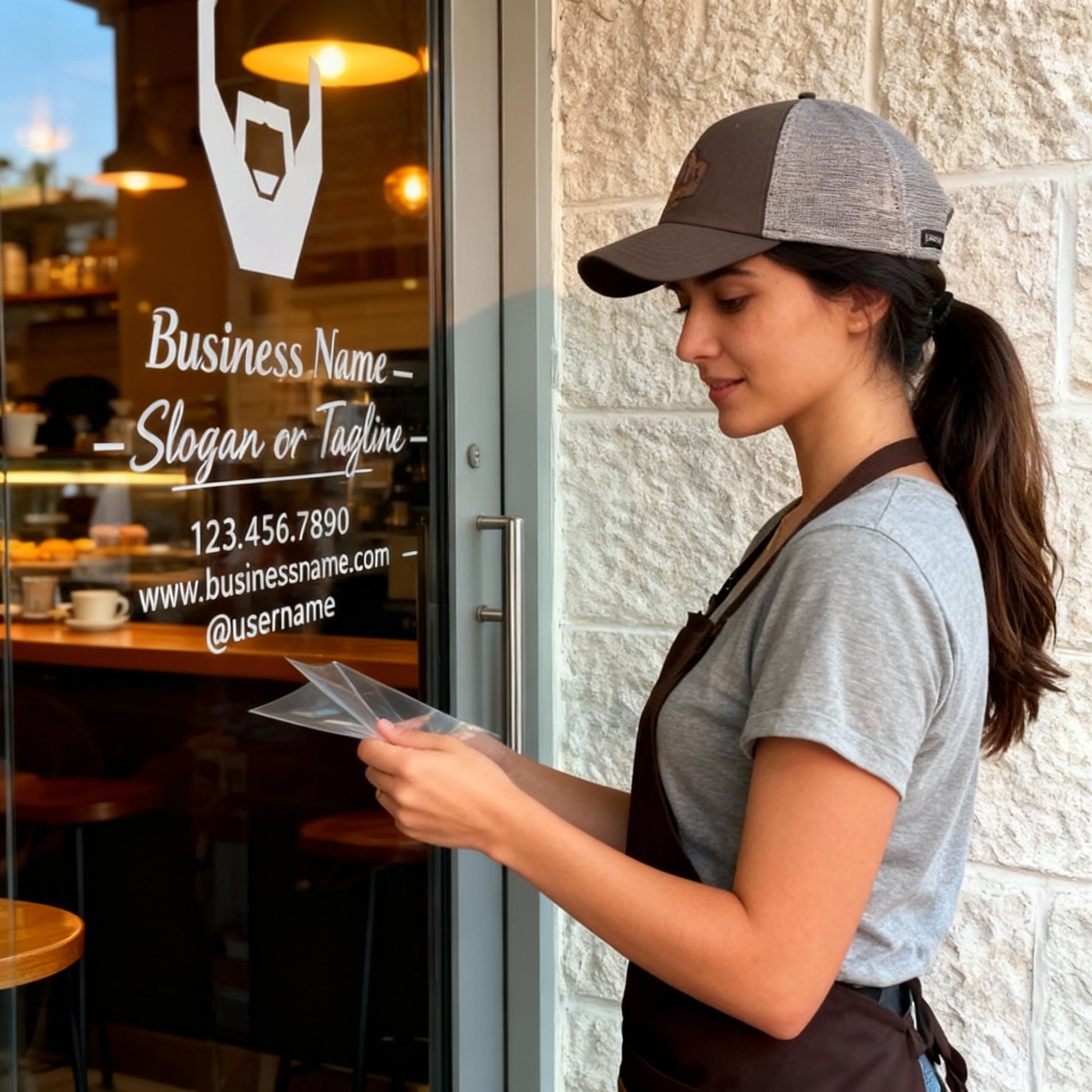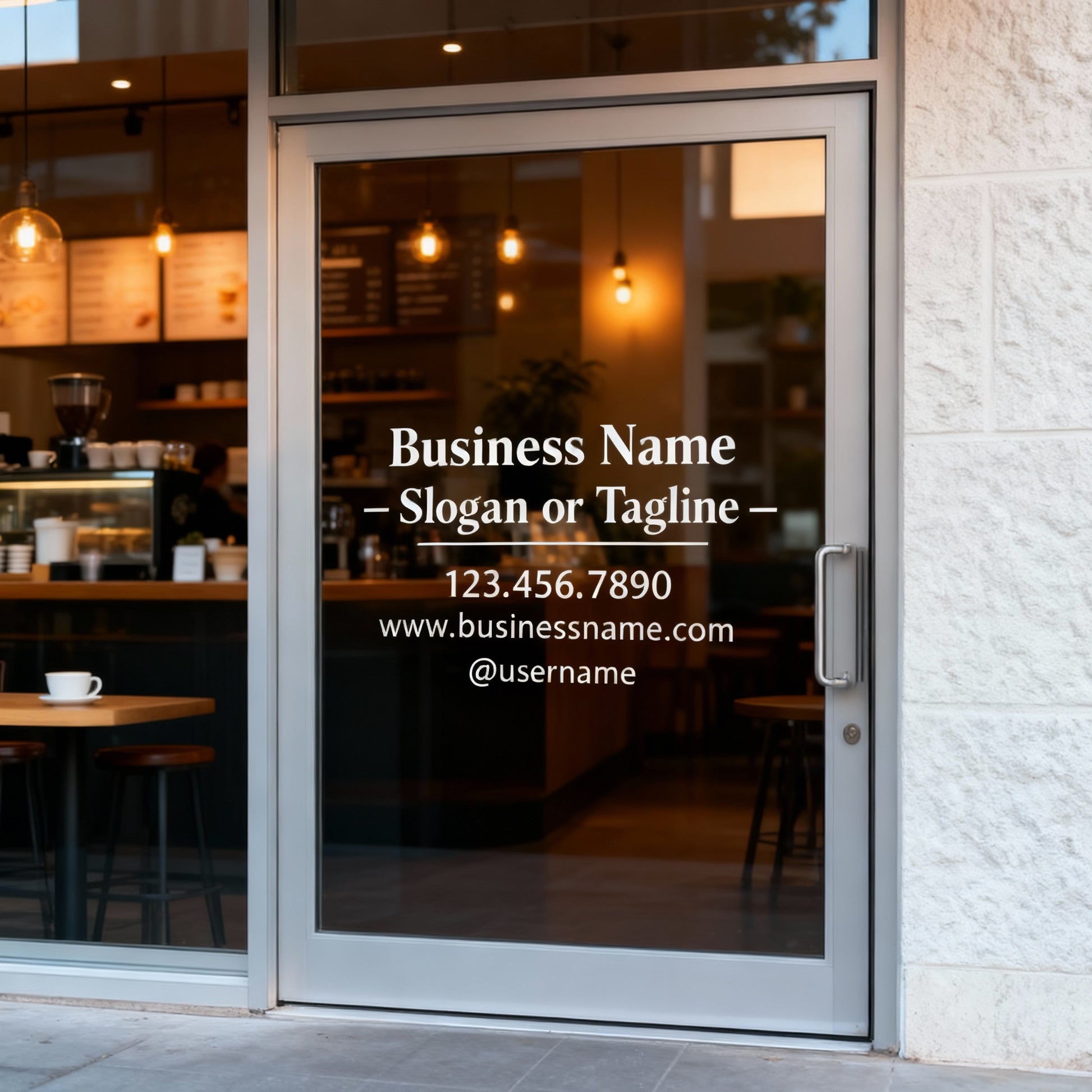 Custom Vinyl Lettering Decal — the perfect way to display your business name, logo, hours, or tagline on your shop window or door. | Free Design & Shipping